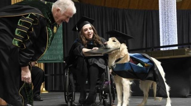 Il 2019 è iniziato con una storia che rischia di essere già ora tra le più commoventi dell’anno. E’ quella che riguarda Brittany e il suo cane Griffin. Quest’ultimo, con il suo affetto e la sua dedizione assoluta nei confronti della padrona, ha permesso a lei – disabile in sedia a rotelle – di laurearsi senza troppe difficoltà.